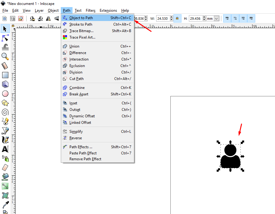- Select the icon you have created and select “Object to Path” from dropdown.