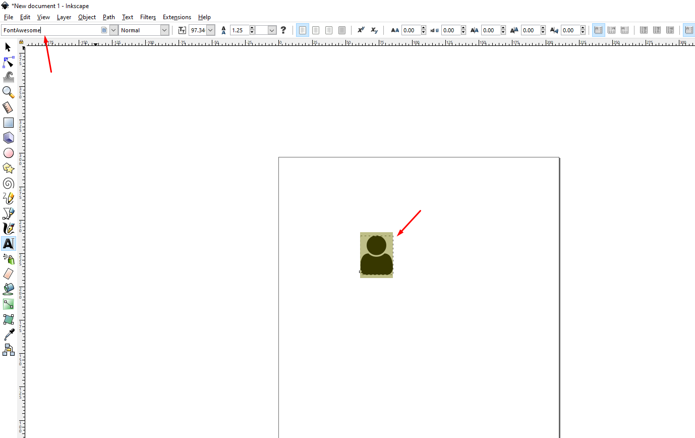 - Select font from top left in inkscape, install the font ttf/otf file in the system if the font is not available in dropdown, and reopen inkscape after font installation